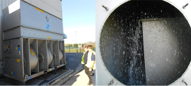 The above picture identifies the result of the high level chemical dosing which has resulted in Cooling Tower starting to “leak water” through the sectional joints.